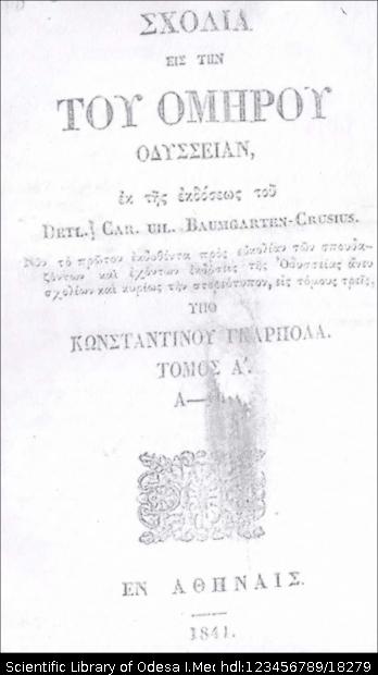 | dc.title | Σχόλια εις την του Ομήρου Οδύσσειαν (τ. 1) | uk_UA |
